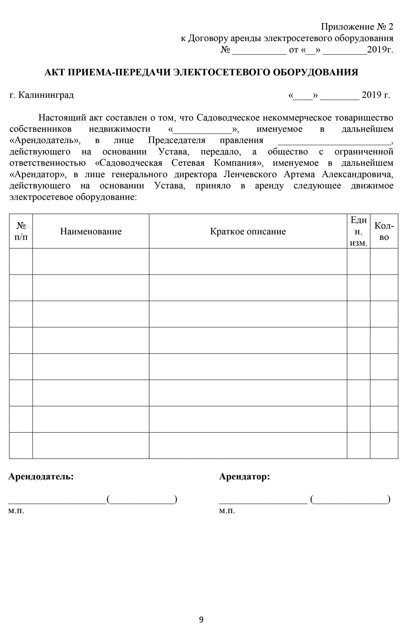 Какие документы необходимы для заключения договора о передаче электрических сетей нашей сетевой организации?